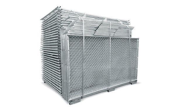 This truckload includes 300 temporary fence kits, each made up of one 6x10 chain-link fence panel, one metal foot, and one clamp. Built with 16-gauge steel tubing and 11.5-gauge mesh, these panels are fully laced and supported by a center vertical brace.