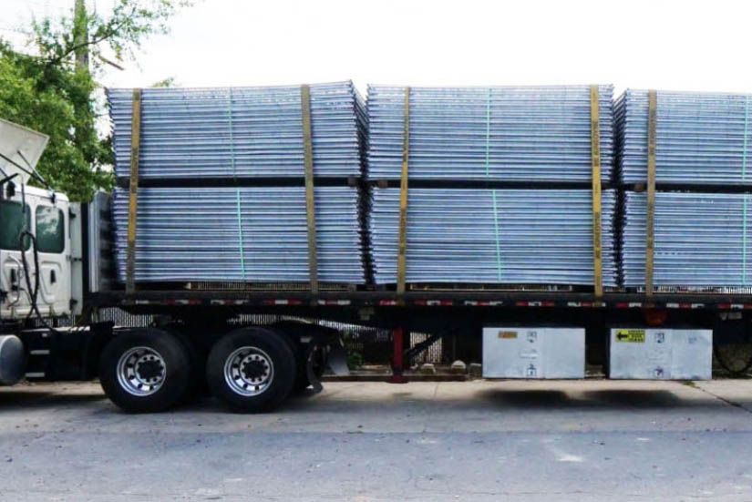 This truckload includes 300 units of chain-link fence panels, 301 metal tube stands, and 300 clamps, packaged as complete kits ready for deployment.