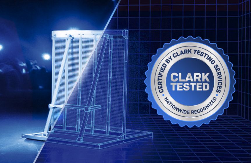 Tested by Clark Testing Services, the StageGuard A-100 meets Green Guide standards for crowd barrier performance.