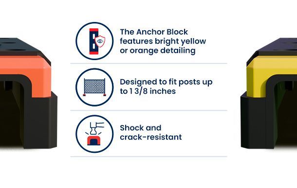 The Anchor Block features bright yellow or orange detailing, helping to prevent trips and falls. |
