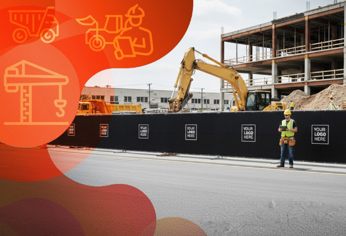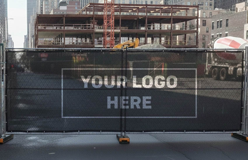Custom fence screens and privacy screens with logo are used when project visibility matters, allowing the fence line to support branding or directional communication. |