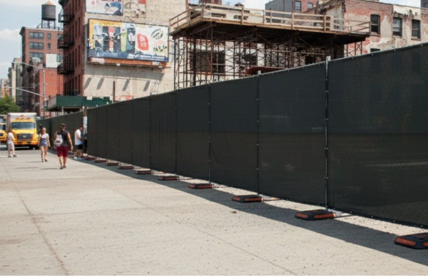 Used when materials, equipment, or active work areas need to be visually shielded from public view along temporary fence lines. |