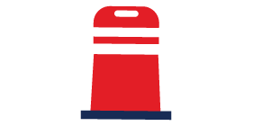 Channelizers are used to direct vehicles along a specific path or lane. These traffic control devices are often placed in a series to create a visible boundary, helping guide traffic through entrances, exits, or detours within a parking lot. |