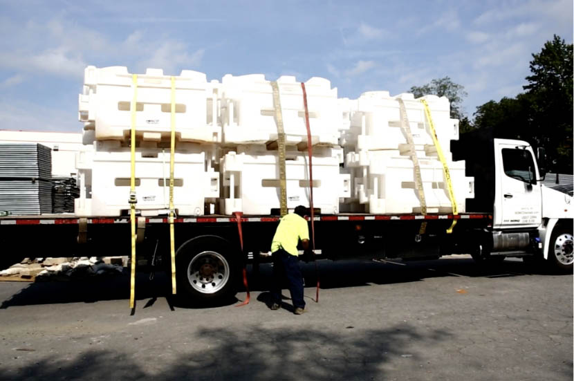 - Complete truckload shipment including 70 plastic water-filled barriers and 70 fence topper systems.