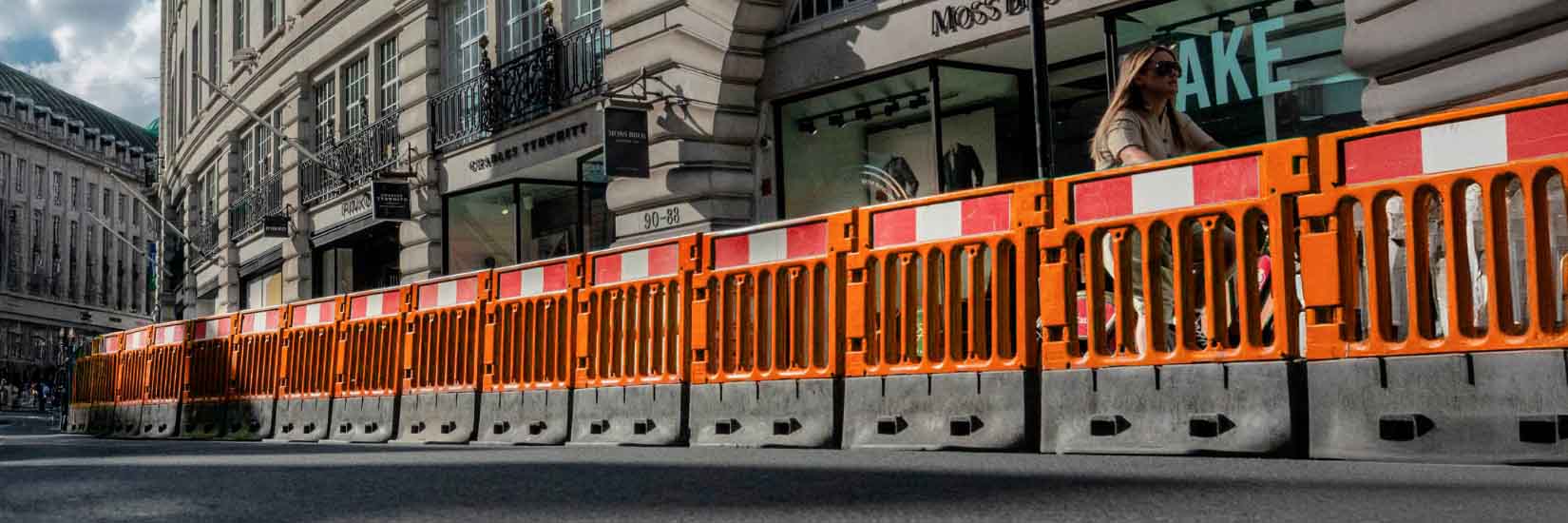 StrongWall is a 39 inch tall plastic barrier built to separate pedestrians from traffic in active work zones. It is a solid choice for street works, utility repairs, and sidewalk closures where a stable, high-visibility barrier is required. The recycled plastic design supports sustainability goals, and the sturdy 40lb base helps it stay upright in busy environments and tough weather. StrongWall is well suited for long-term use at both attended and unattended sites.