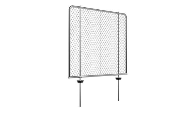This chain-link fence topper is designed to mount directly onto Yodock water barriers, creating a taller perimeter system for pedestrian control and site security. It transforms standard barricades into a temporary fence line without the need for separate fence panels or additional framing.