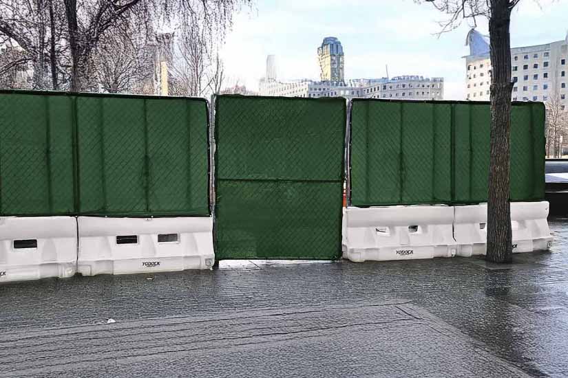 The Yodock® barricades with fence toppers are suited to be paired with privacy screens.